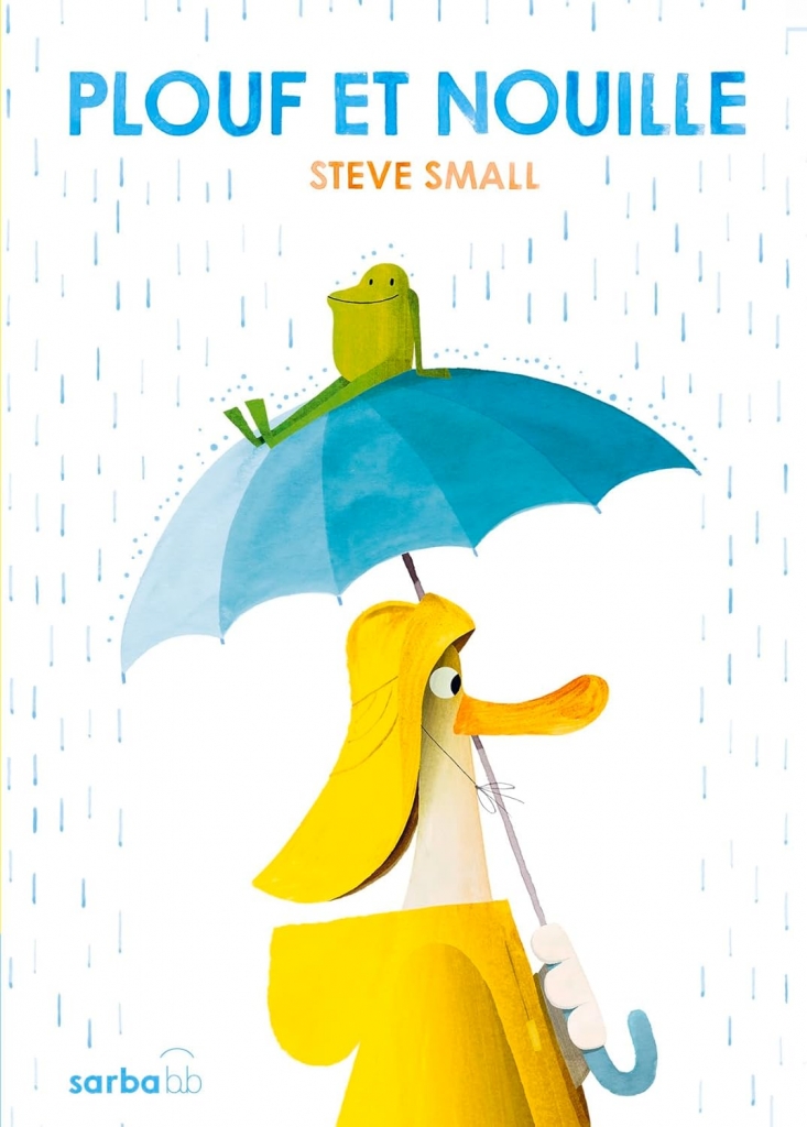 Plouf toujours vêtu du bob et d’un ciré jaune, déteste la pluie, l’eau, tout ce qui mouille. Pas drôle pour un canard. Un soir de tempête un morceau de son toit s’envole laissant la pluie entrer dans la maison. Il faut trouver une solution en attendant le matin et en allant chercher un seau il tombe sur Nouille, une grenouille perdue dans la nuit. Le malheur des uns faisant souvent le bonheur des autres, Ils passent la nuit ensemble, Nouille savourant le seau d’eau mis sous la fuite du toit. Et puis ils passent quelques jours ensemble en essayant de retrouver d’où vient Nouille pour qu’elle puisse rentrer chez elle et c’est ainsi…
